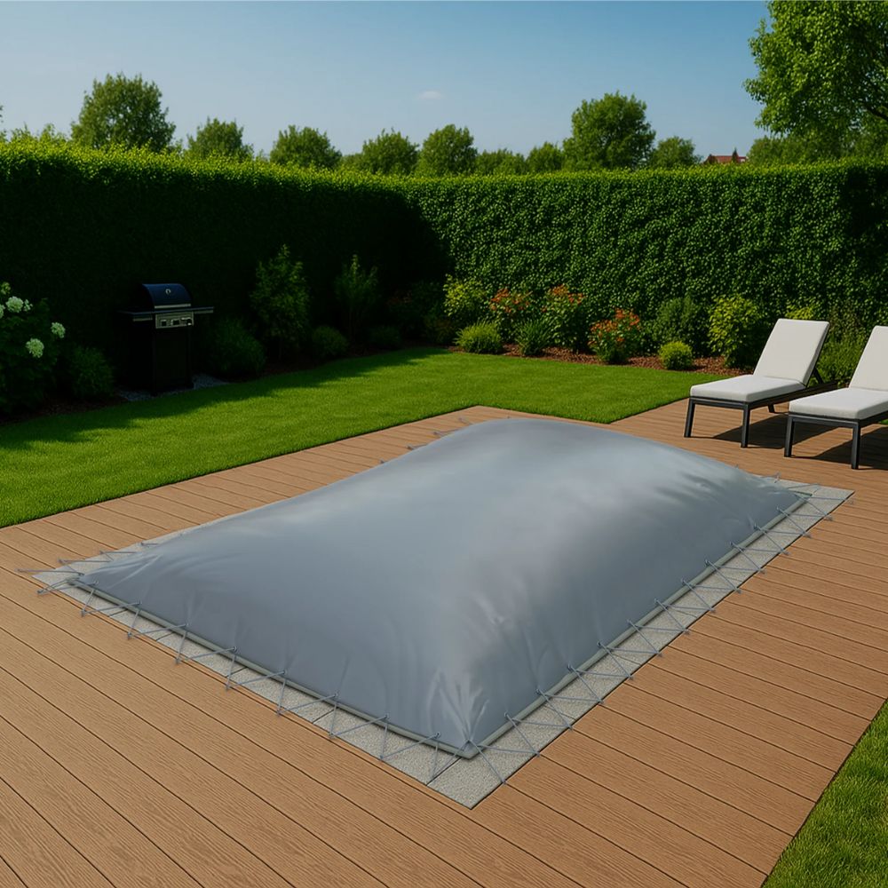 Die aufblasbare Poolabdeckung sorgt für idealen Schutz Ihres Rechteckpools im Winter. Die Abdeckung wird mit Luft aufgeblasen und bietet Schutz gegen Schnee, Regen, Schmutz, Laub, Kleintieren und Tannennadeln.